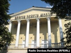 Вход в филологический факультет Донецкого национального университета. До 2016 года на фасаде размещался барельеф украинскому поэту Василию Стусу, под которым часто оставляли живые цветы, даже во время оккупации. Боевики его демонтировали.