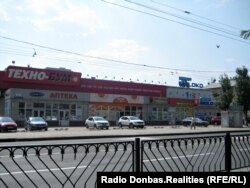 Бывший продуктовый магазин «Риск». В мирное время возле него стояли столы с зонтиками – там было кафе, где отдыхали дончане.