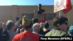 Когда люди, пришедшие на открытие бюста генералиссимусу, начали расходиться, к памятнику Сталину подошел глава регионального отделения "Мемориала" Александр Рудницкий – эта организация тоже выступала против установки бюста. Он сфотографировал таблички, висящие на стене с двух сторон от памятника, и удалился, уклонившись от комментариев.