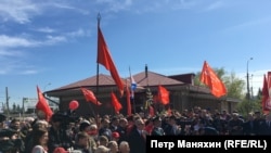 Первыми на территории обкома пришли люди без партийной атрибутики, в основном пожилые. "Представляешь, опять лекарства не выписывают, – рассказывает одна из женщин своей подруге. – Я прихожу, а мне говорят: "Ничего, потерпите". Как так можно-то?" Позже подтягивается мужчина в майке со Сталиным. "Я ее на главном вокзале купил. Там продают вместе с флажками и ленточками", – рассказывает он.