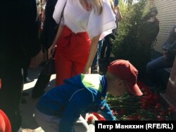 После выступлений вице-спикер горсовета Ренат Сулейманов призвал возложить к памятнику цветы. Под звуки военных песен собравшиеся понесли букеты красных гвоздик, роз и целые корзины цветов. "Три года … не могли памятник поставить!" – громко выругался человек из толпы.