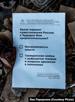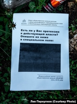 "Доверяете ли вы Путину?" – гласит вопрос на одном из них. Внизу – три варианта ответа, "да", "нет", "не определился", но квадратик для галочки напечатан только напротив первого. "Готовы ли вы выйти на протестную акцию в своем городе?" – гласит вопрос на другом листе. Варианты ответов такие: "Нет, не готов" и "Да, я поддерживаю идеи насилия и хочу дестабилизировать ситуацию в регионе через поддержку опасной оппозиции". Еще один опросный лист: "Есть ли у вас претензии к действующей власти? Опишите их ниже в специальном поле". Специальное поле, однако, оказывается полностью черным, написать на нем что-то попросту невозможно.