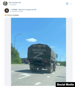 Фраза «Нам нужен мир. Желательно, весь» попадается в связи с Крымом не впервые. Крым.Реалии уже рассказывали, что такой патч носит Валерия Петрусевич – крымчанка, помогающая российским военным. Продают такие шевроны, патчи и в Севастополе. Морпеху из 382-го батальона 810-й отдельной бригады морской пехоты Черноморского флота Ярославу Круглову эта фраза тоже явно нравится. Он выложил у себя на странице «ВКонтакте» машину с такой надписью из зоны боевых действий.