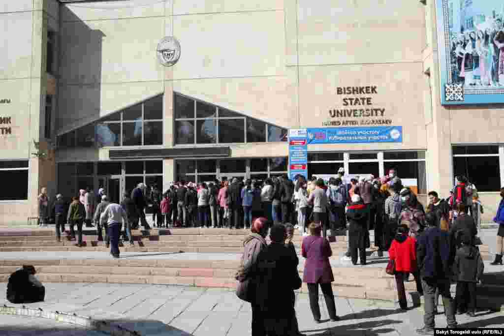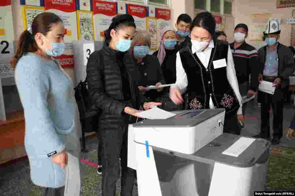 В Кыргызстане проходят очередные парламентские выборы, в которых участвуют 16 партий. Пандемия коронавируса внесла свои особенности в проведение голосования: на избирательных участках появились средства дезинфекции, а на входе в помещение всем выдавали бесплатные маски. Однако около ряда участков все же были замечены очереди.