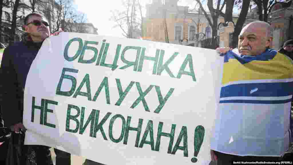 «Президент, подпиши», «Обещание Балуху не выполнено», «Free Kremlin hostages», – с такими лозунгами собрались люди на Банковой. Организаторы акции надеются, что Координационный совет будет создан до конца марта.