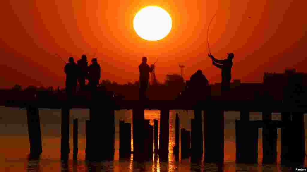 Агентство Reuters опубликовало снимок, на котором рыбаки собираются на причале во время заката в Евпатории.