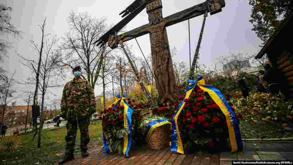 21 ноября в Украине отмечают День достоинства и свободы. В этот день начались две украинские революции: Оранжевая (2004) и Революция достоинства (2013-14 годов). В центре Киева собрались люди, в основном участники протестов в столице, чтобы почтить память погибших во время Революции достоинства. У Креста памяти Героев Небесной сотни состоялся совместный поминальный молебен. А на пешеходном мосту вывесили баннер с надписью «Не теряйте достоинство! Защитим свободу!».