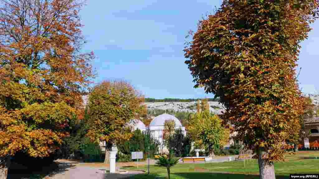 Осенью архитектуру дворца дополняют пожелтевшие деревья