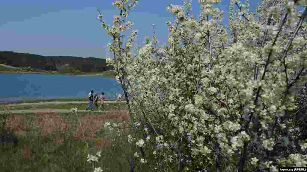 С началом майских праздников немало жителей Симферополя открыли «сезон шашлыков» и отправились на природу – к местному водохранилищу. Окруженный сосновыми перелесками и каменистыми холмами, искусственный водоем ялвяется привлекательным местом для массовых вело- и пеших прогулок, а также рыбалки и пикников. От последнего здешние гурманы вряд ли могут отказаться, несмотря на таблички с предупреждениями и запретами.