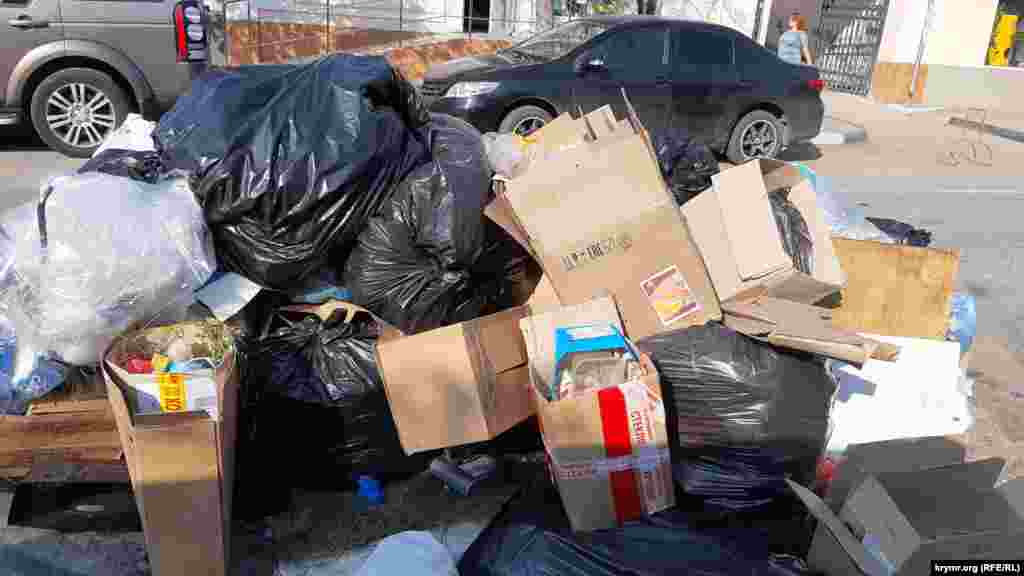 В центре Керчи местные жители складируют бытовые отходы прямо посреди улицы. Груды мусора лежат и на одной из центральных улиц города – улице Козлова, которая соединяет улицу Ленина и центральный рынок.