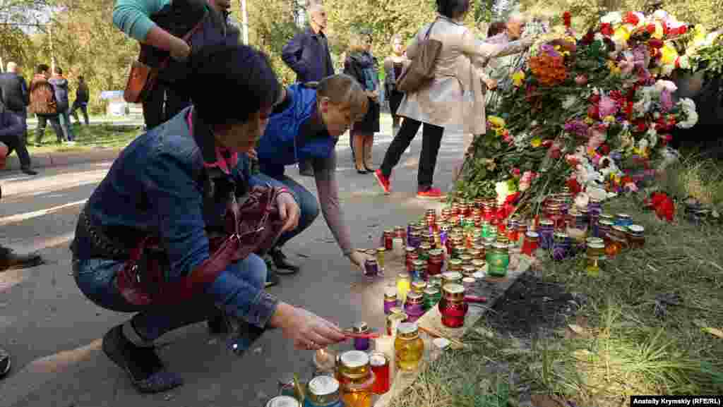В Керчи 18 октября продолжали скорбеть по горожанам, погибшим накануне в политехническом колледже. Весь день туда, на улицу Войкова, где находится учебное заведение, с цветами и игрушками шли люди. Возле импровизированной стены памяти у дороги недалеко от колледжа вскоре выросла гора цветов и зажглись лампадки. Люди продолжали обсуждать случившееся и строить свои версии о причинах трагедии. На территорию колледжа вход был запрещен, там продолжали работать эксперты-криминалисты и сотрудники МЧС.