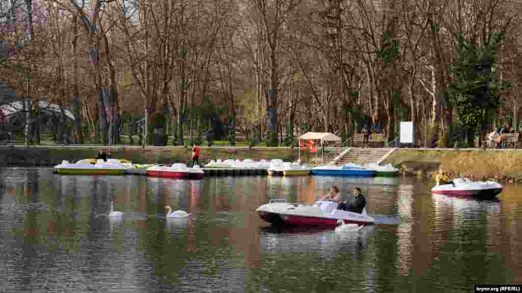Парковый пруд – наиболее популярный искусственный водоем крымской столицы и центральный объект самой «Гагарки», как горожане называют свой главный парк. На нем давно обитают лебеди, дикие утки, лысухи, черепахи. Пернатые давно привыкли к людям, которые их подкармливают с берега, и пересекаются с ними на катамаранах и прогулочных лодках на самом пруду.