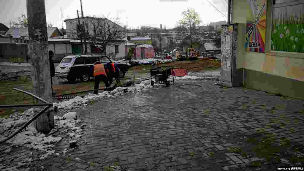 Работают и в грязь, и в слякоть: ремонт дорог в Симферополе (фоторепортаж)