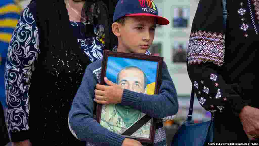 Мать и племянница Андрея Майданюка, младшего сержанта 28-й отдельной механизированной бригады. Андрей погиб 16 июля 2014 вместе со своими боевыми побратимами Василием Новаком, Виталием Шумом и Константином Ковальчуком, прикрывая отход своего подразделения