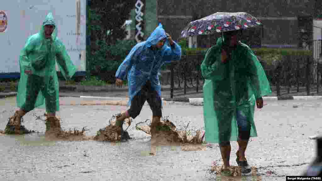 До этого, в ночь на четверг, в восточных районах Крыма выпало почти две месячные нормы осадков. В Керчи произошло наводнение. На полуострове ввели режим чрезвычайной ситуации.