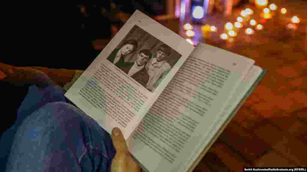 Несколько десятков активистов собрались 20 октября вечером в Киеве на чтение при свечах книги Вахтанга Кипиани «Дело Василия Стуса». Чтение устроили на символическом месте, где раньше Стус был приговорен к заключению, а сейчас на этом месте расположен Печерский районный суд уже независимой Украины.