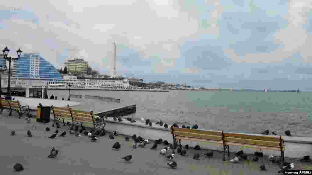 От Севастопольской бухты до набережной Корнилова – утреннее время в первые дни зимы проходит в тишине и спокойствии. От летнего ажиотажа не осталось и следа. Только чайки и голуби никуда не исчезли, а бездомным собакам заботливые люди стелют что-то теплое прямо на набережной, и редкие прохожие стараются не тревожить их покой.