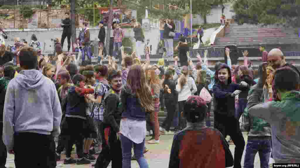 В воскресенье 21 мая в Феодосии состоялся праздник красок. На площади возле светомузыкального фонтана дети и взрослые бросались разноцветными красками, танцевали, участвовали в конкурсах.