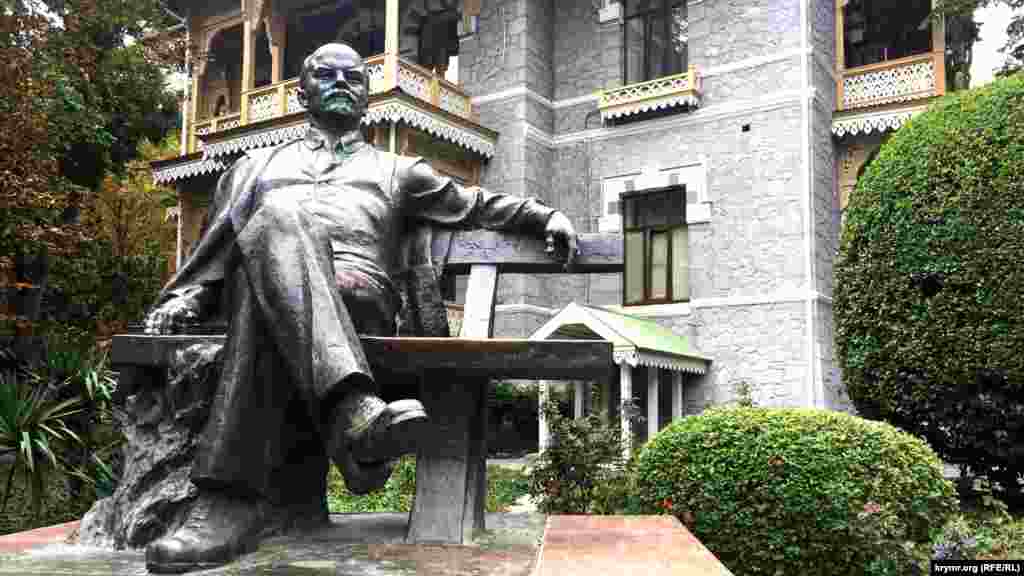 В санатории, расположенном на набережной Гурзуфа, туристы охотно фотографируются с памятниками Ленина и Пушкина