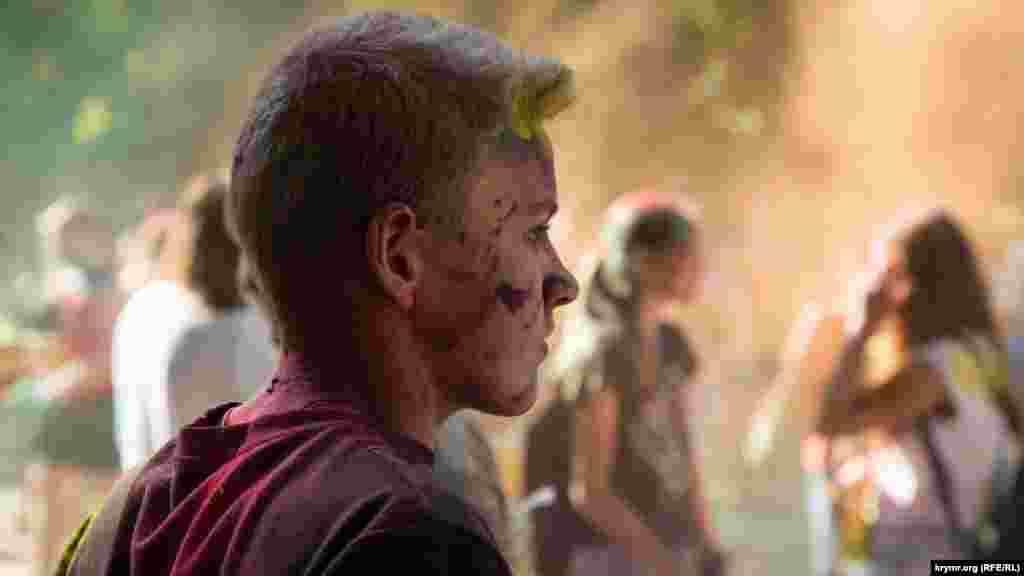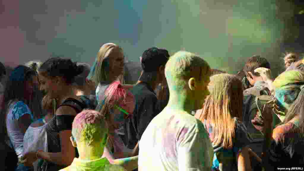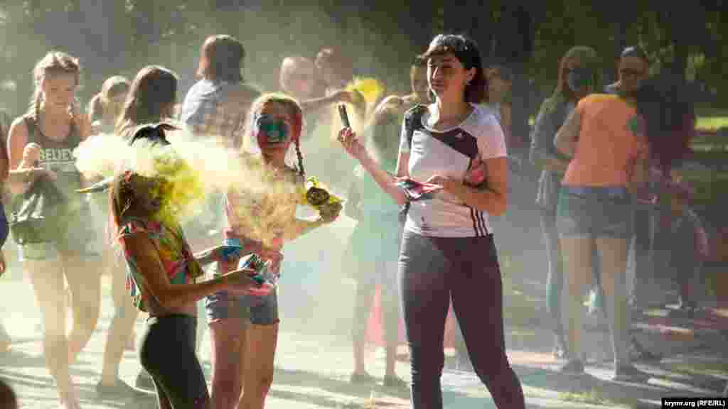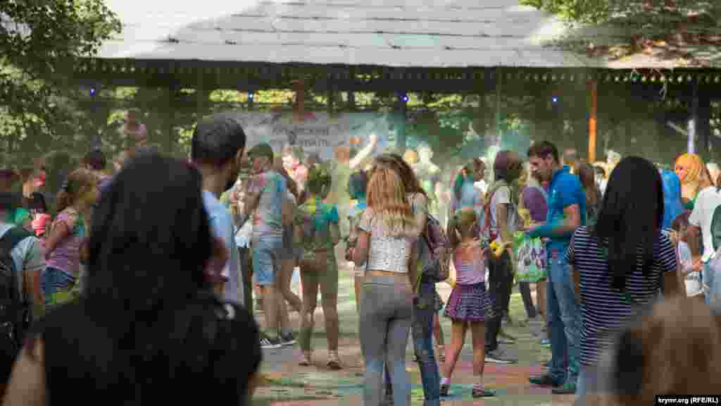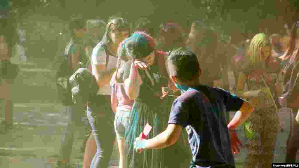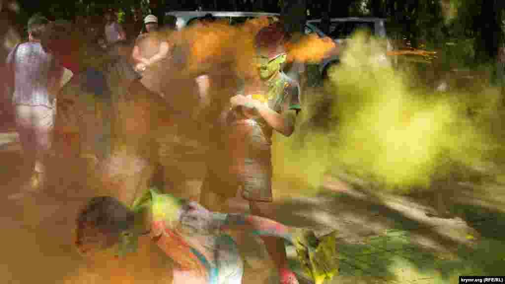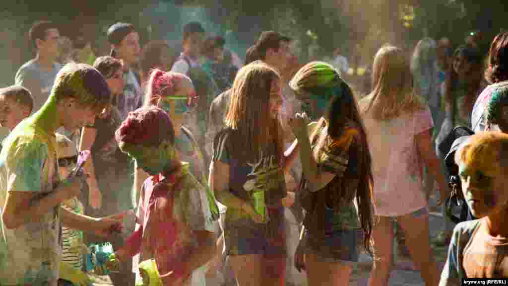 В Симферополе в Гагаринском парке прошел фестиваль красок Холи. Это индийский праздник, на котором участники обсыпают друг друга красками из трав и натуральных красителей. В симферопольской битве красками участвовало около 100 человек.