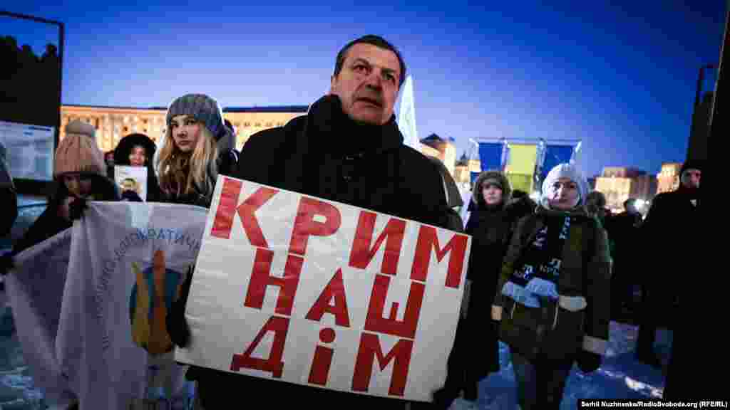 В Киеве на Майдане независимости 26 февраля прошел митинг солидарности с крымчанами, проживающими на аннексированном Россией полуострове. На акцию собралось более 200 человек. На митинг, в частности, пришли заместитель председателя Меджлиса крымскотатарского народа Ахтем Чийгоз, татарский активист, бывший политзаключенный Рафис Кашапов. Спикеры отметили, что подобные акции важны для крымчан, которые «остались жить в оккупации».