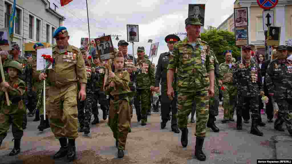 В аннексированном Россией Крыму 9 мая отмечают российский День победы. Этот день считают праздником победы Красной армии и советского народа над гитлеровоской Германией.