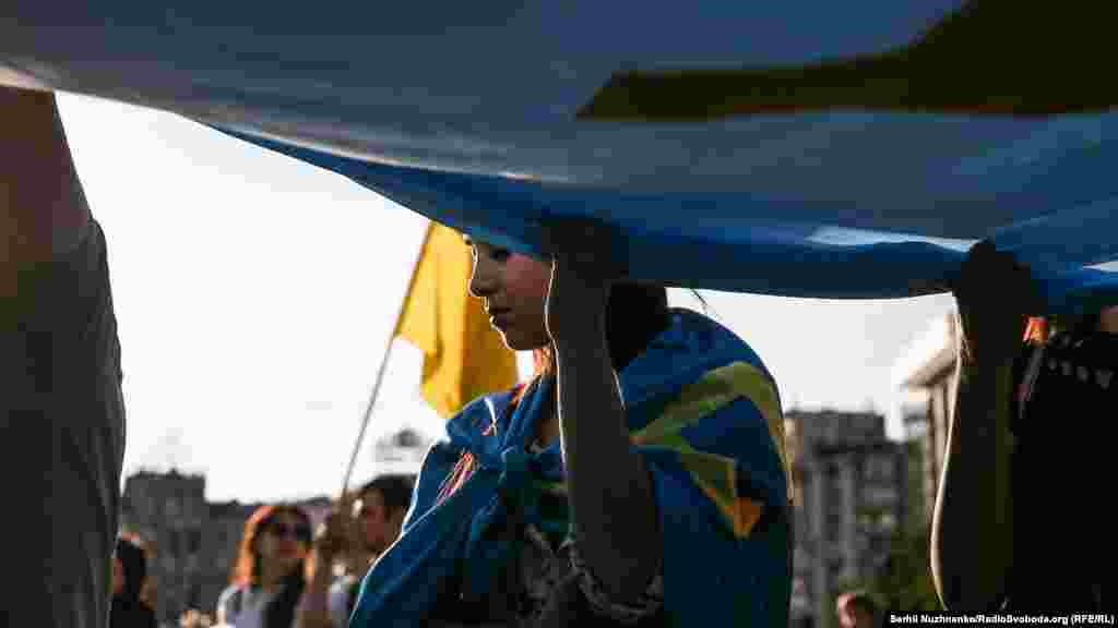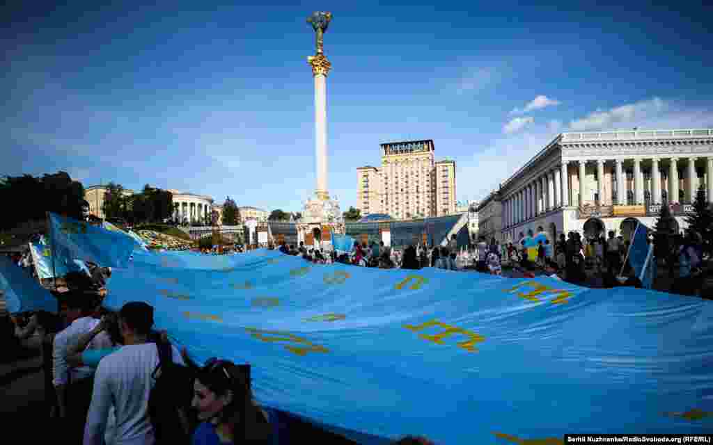 Мероприятие началось с шествия в центре Киева. Активисты развернули крымскотатарский флаг на пересечении улиц Крещатик и Богдана Хмельницкого, после чего прошли до Майдана Независимости