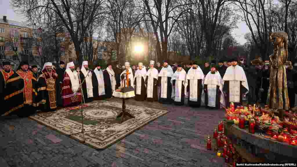 В Киеве возле «Мемориала жертвам Голодомора» собрались сотни людей, чтобы почтить память погибших от голода.