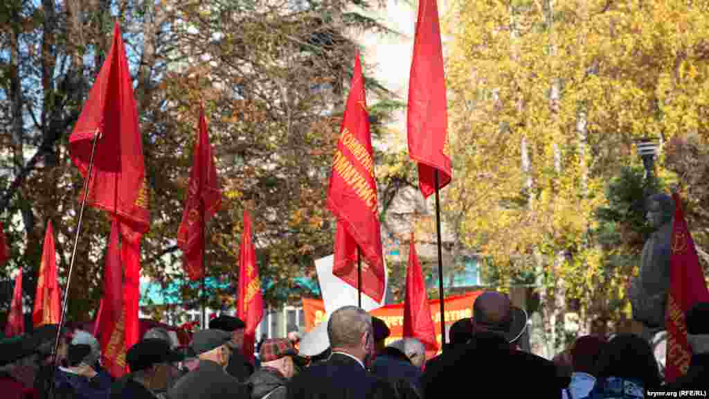 В Симферополе 7 ноября устроили шествие в честь 100-летия Октябрьской революции. Как это было – в фоторепортаже корреспондента Крым.Реалии.