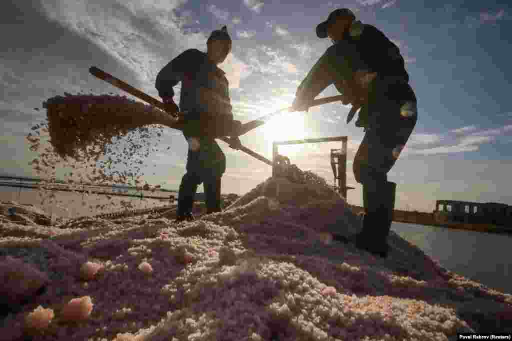 Морская лагуна, известная как озеро Сасык-Сиваш, является источником редкого ресурса – розовой соли. Минерал окрашен крошечными водорослями, которые производят пигмент бета-каротин. Каждую осень сезонные рабочие собирают тысячи тонн розовой соли для переработки и экспорта.