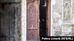 То, что это армянский храм, всегда легко определить по хачкарам. Это такие вставки в стене храма с изображением креста. Слово хачкар образовано из армянских корней «хач» – «крест» и «кар» – «камень». Вот эти хачкары на стене храма Иоанна Богослова.