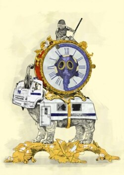 – Рококо – это очень искусственный стиль, во многом очень извращенный. Он весь такой уродливый, потому что его красота – это надуманная красота… Я работаю с арт-дилером и часто смотрю произведения искусства разных эпох. Так получилось, что в день, когда я прочитала про эти пытки, я посмотрела часы рококо в виде слона, которые я использовала в картинах по делу "Сети". Эти часы очень красивые, и в то же время они абсолютно продукт колониального общества. Была такая мода, когда изображали слона индийского или африканского, и там, где у меня омоновец сидит наверху, там был арапчонок или мартышка. Для людей того времени, колониального общества, это нормально было – посадить там фигуру арапчонка, африканца или мартышки. Так же получается у нас с пытками и многим другим – мы об этом читаем, привыкаем, и для нас это становится нормой. Да, мы знаем, что есть полиция, есть ФСБ и – да, они пытают. Это их работа, это происходит с другими людьми. С нами пока не произошло и, наверное, не произойдет. Все замыливается и становится какой-то привычной частью нашей жизни.