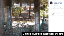 16 октября ялтинец Виктор Ямников обнародовал в Facebook результаты защиты деревьев парка от повреждений. Они оказались обернуты пищевой пленкой.