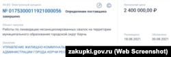 Согласно тендерной документации, за эти средства была куплены услуги по ликвидации свалок, а также приему и вывозу отходов производства и потребления. Согласно документам, вывоз отходов в рамках этой закупки должен производиться до конца года.