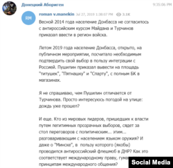 Вот только участников акции попытались разогнать силовики группировки «ДНР». Об этом на своей странице в Фейсбуке написал один из участников акции Николай Авилов. Но участники разошлись только после сообщения о заминировании площади Ленина, где проходил митинг. В социальных сетях уже не могут определиться: кто предатель – те, кто выступили против «Медведчука и его желания вернуть их земли Украине», а значит против организаторов флешмоба, те, кто запустили флешмоб #ЗеленскийПризнайВыборДонбасса, или те, кто прислал боевиков на акцию протеста?
