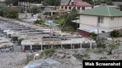 Селевым потоком залило не только жилые дома, но и десятки старых троллейбусов, списанных ранее из троллейбусного депо.