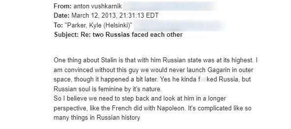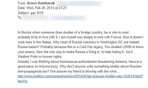 Аналогичные вопросы возникали вокруг Антона Вушкарника, который ранее работал в российском посольстве в Вашингтоне и давал объяснения американским властям относительно поддержки Москвой сирийского диктатора Башара Асада, а сейчас является старшим стратегическим советником секретариата ОБСЕ. В распоряжении Радио Свобода имеется письмо, отправленное Вушкарником по электронной почте сотруднику Конгресса США со ссылкой на опубликованное на YouTube видео, в котором украинские политики уподобляются нацистам, а также говорится, что Америке угрожает "гомосексуальный авторитаризм", при этом используется гомофобная лексика. Еще одна героиня этого расследования, Дарья Боярская, работала переводчицей российского президента Владимира Путина на переговорах с президентом США Дональдом Трампом, сейчас является сотрудницей международного секретариата Парламентской ассамблеи ОБСЕ. По версии бывшего чиновника Белого дома, она была назначена переводчицей на этих переговорах, чтобы отвлекать внимание Трампа.