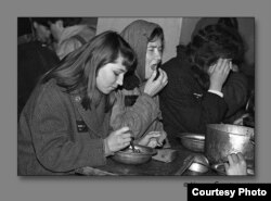 По словам Ксении, всю гуманитарную помощь, которую привозили детям разные благотворительные фонды, сотрудники тюрьмы отбирали и продавали на сторону: "У нас на всех была одна коляска для прогулок. Внизу был дворик, пустой, одна скамейка, и все. Никаких игрушек. Гуляли по oчереди… Но однажды приезжали финны или немцы, нас снимали, мамочек. А тюремная администрация выставила все красиво. Привезли по коляске каждой, выставили детское питание, которого мы никогда не видели. И сразу, как иностранцы уехали, все обратно отобрали. Напротив была большая комната закрытая. И со мной сидела девочка, "замочница", вскрывала замки. Давай, говорит, посмотрим, что там. Вскрыла комнату, а там все завалено: питание, коляски, вещи детские. Помощь гуманитарная. Они брали себе, на вынос".